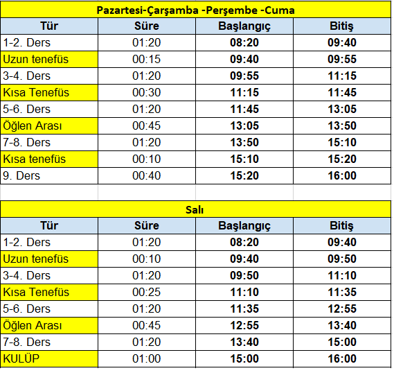 GÜNLÜK ZAMAN ÇİZELGESİ